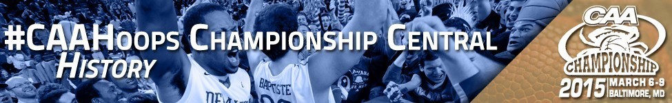 CHAMPIONSHIP CENTRAL PAGES > Homepage -- Schedule/Results > Tickets > Events/Promotions > Hotels > Transportation/Parking > Restaurants > Championship History > Baltimore.org/CAA > Baltimore's Royal Farms Arena CAA Basketball history begins with the 1982-83 season when the league was known as the “ECAC South.” League membership consisted of East Carolina, George Mason, James Madison, Navy, Richmond and William & Mary. It was the first year when league members paid dues to fund their own operations. Three previous years of ECAC South basketball - 1980-82 - are not included. Membership for those years included teams which had left the league prior to 1982-83. PAST CHAMPIONS Year Champion Coach Score Runner-Up Site 1983 James Madison Lou Campanelli 41-38 William & Mary Richmond, Va. 1984 Richmond Dick Tarrant 74-55 Navy Harrisonburg, Va. 1985 Navy Paul Evans 85-76 Richmond Williamsburg, Va. 1986 Navy Paul Evans 72-61 George Mason Fairfax, Va. 1987 Navy Pete Herrmann 53-50 UNCW Hampton, Va. 1988 Richmond Dick Tarrant 73-70 George Mason Hampton, Va. 1989 George Mason Ernie Nestor 78-72, ot UNCW Hampton, Va. 1990 Richmond Dick Tarrant 77-72 James Madison Richmond, Va. 1991 Richmond Dick Tarrant 81-78 George Mason Richmond, Va. 1992 Old Dominion Oliver Purnell 78-73 James Madison Richmond, Va. 1993 East Carolina Eddie Payne 54-49 James Madison Richmond, Va. 1994 James Madison Lefty Driesell 77-76 Old Dominion Richmond, Va. 1995 Old Dominion Jeff Capel, Jr. 80-75 James Madison Richmond, Va. 1996 VCU Sonny Smith 46-43 UNCW Richmond, Va. 1997 Old Dominion Jeff Capel, Jr. 62-58, ot James Madison Richmond, Va. 1998 Richmond John Beilein 79-64 UNCW Richmond, Va. 1999 George Mason Jim Larranaga 63-58 Old Dominion Richmond, Va. 2000 UNCW Jerry Wainwright 57-47 Richmond Richmond, Va. 2001 George Mason Jim Larranaga 35-33 UNCW Richmond, Va. 2002 UNCW Jerry Wainwright 66-51 VCU Richmond, Va. 2003 UNCW Brad Brownell 70-62 Drexel Richmond, Va. 2004 VCU Jeff Capel, III 55-54 George Mason Richmond, Va. 2005 Old Dominion Blaine Taylor 73-66, ot VCU Richmond, Va. 2006 UNCW Brad Brownell 78-67 Hofstra Richmond, Va. 2007 VCU Anthony Grant 65-59 George Mason Richmond, Va. 2008 George Mason Jim Larranaga 68-59 William & Mary Richmond, Va. 2009 VCU Anthony Grant 71-50 George Mason Richmond, Va. 2010 Old Dominion Blaine Taylor 60-53 William & Mary Richmond, Va. 2011 Old Dominion Blaine Taylor 70-65 VCU Richmond, Va. 2012 VCU Shaka Smart 59-56 Drexel Richmond, Va. 2013 James Madison Matt Brady 70-57 Northeastern Richmond, Va. 2014 Delaware Monte Ross 75-74 William & Mary Baltimore, Md.