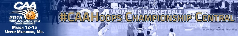 CHAMPIONSHIP CENTRAL PAGES > Homepage -- Schedule/Results > Tickets > Hotels > Restaurants > Championship History > Gaylord National Resort > National Harbor > The Show Place Arena > Directions/Parking > Wegman's Catering TICKETS ON SALE NOW!! 2015 WOMEN'S #CAAHOOPS CHAMPIONSHIP BRACKET THURSDAY, MARCH 12 GAME 1 - No. 9 College of Charleston vs. No. 8 Towson - 12:00 p.m. TV: None | ONLINE: CAA.TV | LIVE STATS: CAAStats.com Box (XML | HTML) | Recap | Photos | Infographic Highlights | Winner Press Conference Video | Loser Press Conference Video | Winner Press Conference Audio | Loser Press Conference Audio GAME 2 - No. 10 Northeastern vs. No. 7 Delaware - 2:30 p.m. TV: None | ONLINE: CAA.TV | LIVE STATS: CAAStats.com Box (XML | HTML) | Recap | Photos | Infographic Highlights | Winner Press Conference Video | Loser Press Conference Video | Winner Press Conference Audio | Loser Press Conference Audio FRIDAY, MARCH 13 GAME 3 - Game 1 Winner vs. No. 1 James Madison - 12:00 p.m. TV: American Sports Network | ONLINE: CAA.TV | LIVE STATS: CAAStats.com Box (XML | HTML) | Recap | Photos | Infographic Highlights | Winner Press Conference Video | Loser Press Conference Video | Winner Press Conference Audio | Loser Press Conference Audio GAME 4 - No. 5 UNCW vs. No. 4 Elon - 2:30 p.m. TV: American Sports Network | ONLINE: CAA.TV | LIVE STATS: CAAStats.com Box (XML | HTML) | Recap | Photos | Infographic Highlights | Winner Press Conference Video | Loser Press Conference Video | Winner Press Conference Audio | Loser Press Conference Audio GAME 5 - Game 2 Winner vs. No. 2 Drexel - 5:00 p.m. TV: American Sports Network | ONLINE: CAA.TV | LIVE STATS: CAAStats.com Box (XML | HTML) | Recap | Photos | Infographic Highlights | Winner Press Conference Video | Loser Press Conference Video | Winner Press Conference Audio | Loser Press Conference Audio GAME 6 - No. 6 William & Mary vs. No. 3 Hofstra - 7:30 p.m. TV: American Sports Network | ONLINE: CAA.TV | LIVE STATS: CAAStats.com Box (XML | HTML) | Recap | Photos | Infographic Highlights | Winner Press Conference Video | Loser Press Conference Video | Winner Press Conference Audio | Loser Press Conference Audio SATURDAY, MARCH 14 GAME 7 - Game 3 Winner vs. Game 4 Winner - 1:00 p.m. TV: Comcast SportsNet (TBD) | ONLINE: CAA.TV | LIVE STATS: CAAStats.com Box (XML | HTML) | Recap | Photos | Infographic Highlights | Winner Press Conference Video | Loser Press Conference Video | Winner Press Conference Audio | Loser Press Conference Audio GAME 8 - Game 5 Winner vs. Game 6 Winner - 3:30 p.m. TV: Comcast SportsNet (TBD) | ONLINE: CAA.TV | LIVE STATS: CAAStats.com Box (XML | HTML) | Recap | Photos | Infographic Highlights | Winner Press Conference Video | Loser Press Conference Video | Winner Press Conference Audio | Loser Press Conference Audio SUNDAY, MARCH 15 GAME 9 - Game 7 Winner vs. Game 8 Winner - 1:00 p.m. TV: Comcast SportsNet (TBD) | ONLINE: CAA.TV | LIVE STATS: CAAStats.com | POSTGAME PRESS CONFERENCES & CELEBRATION: CAA.TV Box (XML | HTML) | Recap | Photos | Infographic Highlights | Winner Press Conference Video | Loser Press Conference Video | Winner Press Conference Audio | Loser Press Conference Audio